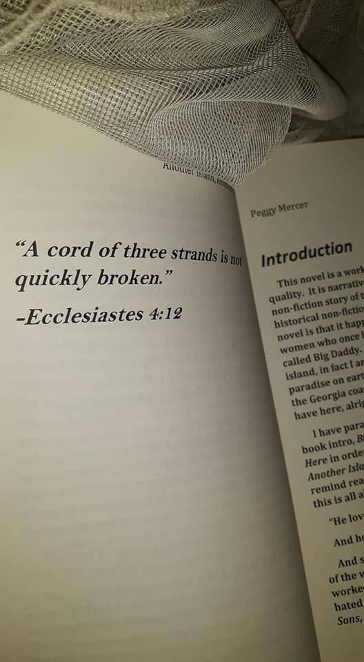 Here is a copy of the gorgeous cover, with art work by Regina Coffee, a local artist. I am thrilled with this fiction novel, and it is Christian based and oriented to the nth. This is a narrative novel about five ladies who fall in love with Jesus and stumble upon a desire to return to their faith roots. It is set on Big Daddy Island off the coast of Georgia, and so, more Big Daddy! I think the appearance of “quite a character” named Vestal and the boat ride are the highlights and then the barrier island with creatures! Ut-oh! Book is dedicated to Twitter friends and to the memory of some loved ones!