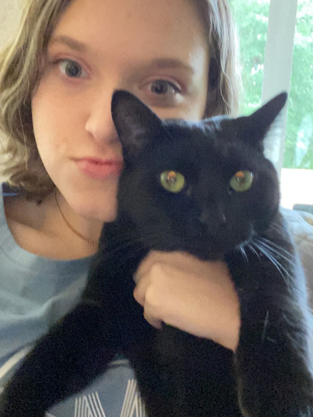 about a black cat, who is afraid of Halloween! The photos used show the family,
